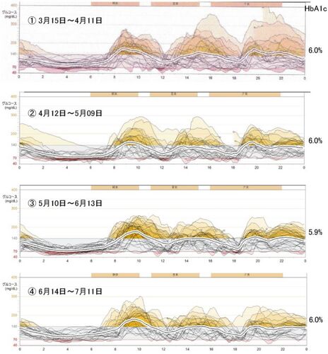 昨日は受診日でした。血液検査の結果は予想どおりで、A1cが僅かに悪くなりました。これは、”就寝中の低血糖を撲滅”に取り組んでいるので、血糖値の平均が上がったためと思います。 過去4ヶ月間の変動は、こんな感じです。 この10日間を見れば、就寝中に7…