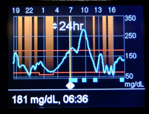 時々、起床時の血糖値が高い時があります。通常は、高いと言っても120mg/dL前後です。ところが、今朝は、ポンプのグルコース値が異常に高い180mg/dL越えでした。SMBGで測ると186mg/dL。起床時に、これほどの高血糖になったのは、ポンプを使い始め以…