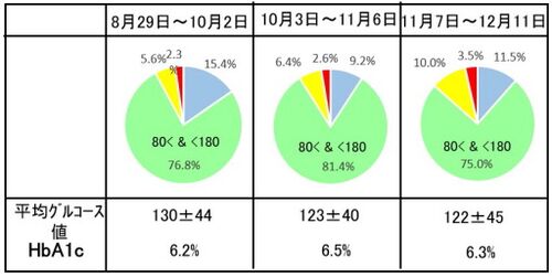 先週の木曜(18日)は通院日でした。 下図は、血糖値の変化と検査結果の推移です。 このように並べると、血糖値の変動幅が小さくなっている変化がひと目で把握できます。11月下旬から食事のボーラスにデュアルを使っています。 12月中旬までは試行錯誤…