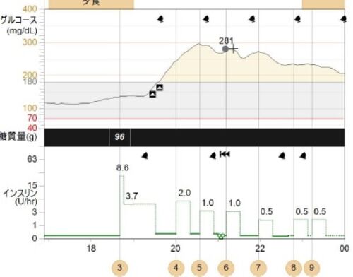 先週の木曜日(7/11)、夕食後に血糖値がとても高くなりました。カーボカウントは間違っていないはずなのに、「あれっ! なぜ?」という感じで、ポンプのグルコース値がグングン上がり、2時間後にSMBGで280mg/dLになったので、2単位の追加ボーラスをし…