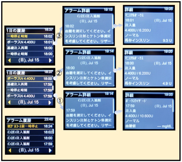なぜ、同じ4.4単位で3回も注入が止まったのか理解できません。状況から類推すると、ポンプのソフトウェアに問題があるのでは、と疑っています。