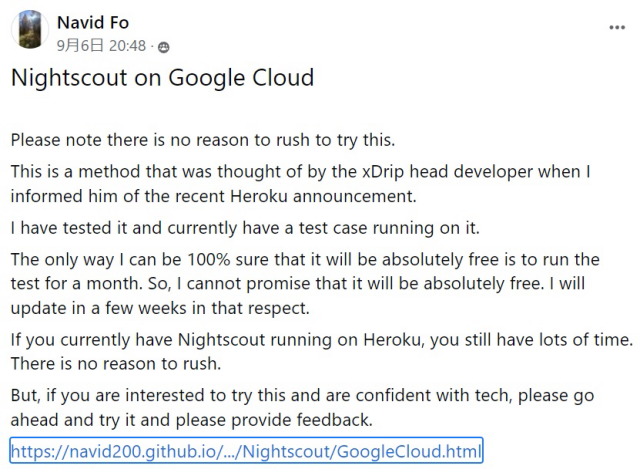 Google CloudでNightscoutを動かす方法についても注視したい。