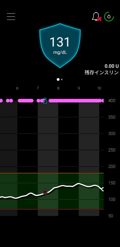 ポンプのアルゴリズムはオートモードで注入されたインスリン量で足りていると計算している。