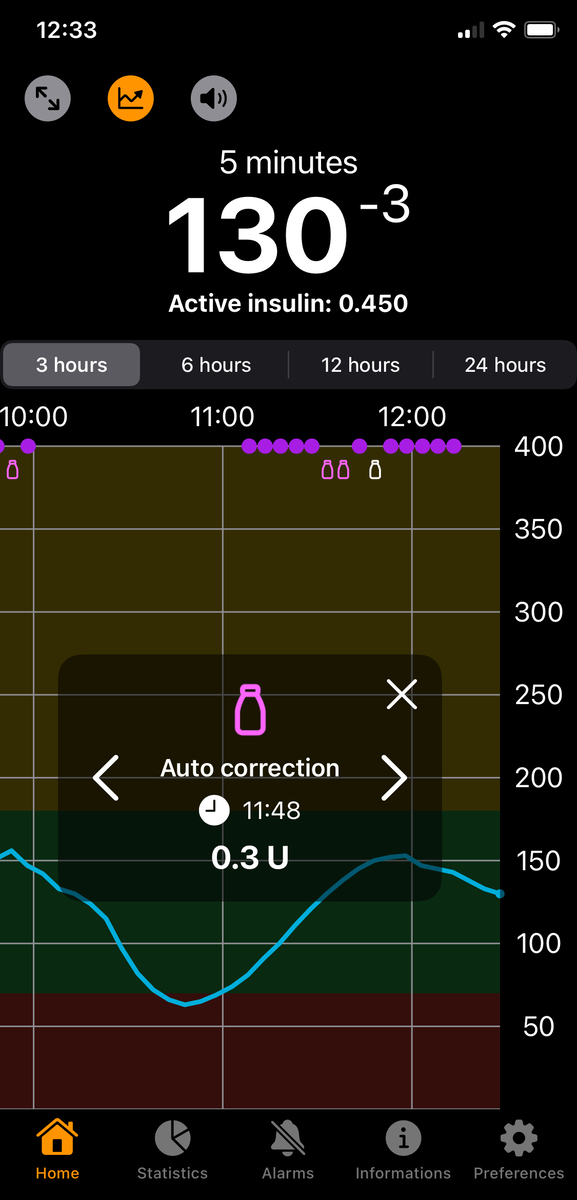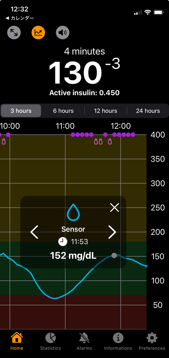 同様に、バイアルマークをタップする(あるいは移動する)と自動補正ボーラスが表示される。