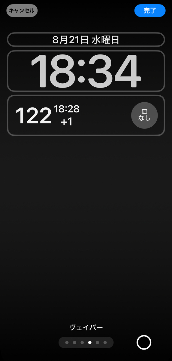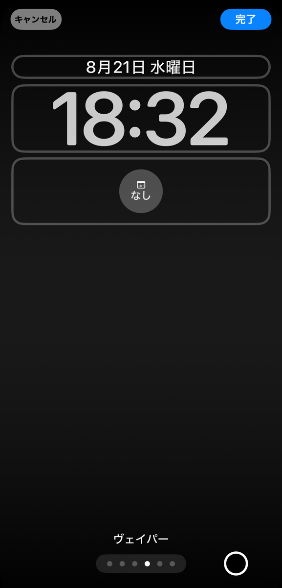 ロック画面の何も表示されていない箇所を長押しすると、カスタマイズ選択画面に移動する。カスタマイズをタップする。