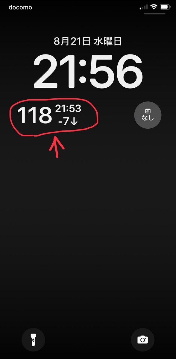 ロック画面に表示されているグルコース値をタップすると、Guardian Monitorに移動する。1アクションでアプリを表示できる。