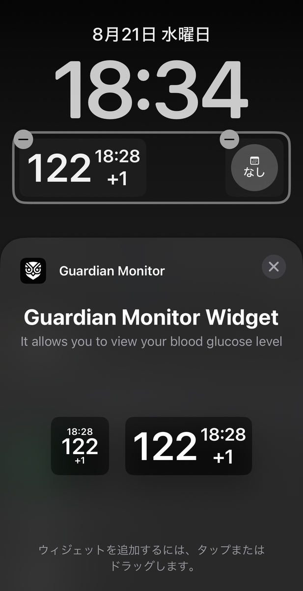 ミニメドモバイルアプリはiPhoneのロック画面に登録できないが、Guardian Monitorは登録できる。