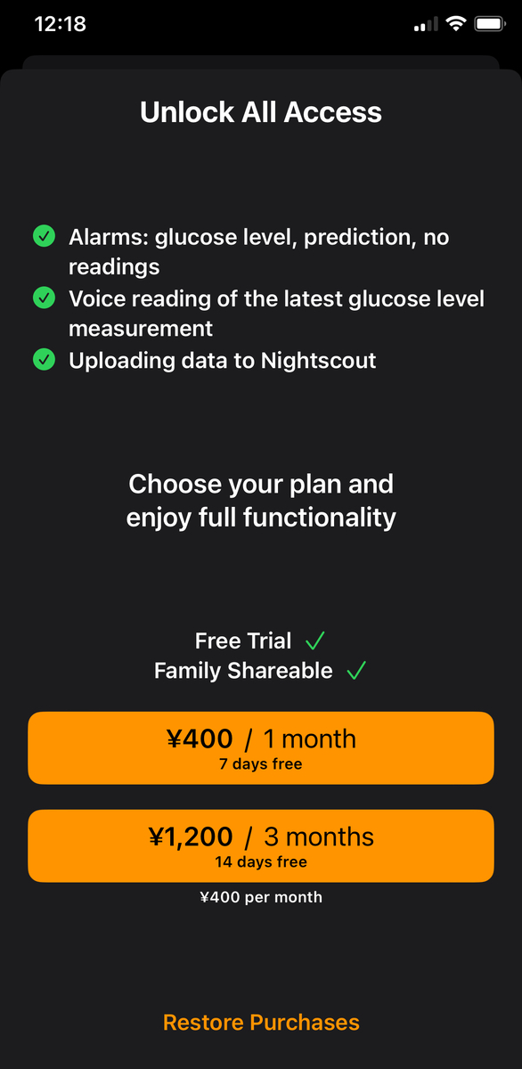 xDrip+のためにAndroidスマホとの2台持ちになっているが、そのうち、Guardian Monitorの有料機能を行い、iPhoneに統一するかもしれない。